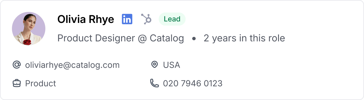 Agents can immediately view critical company data without ever leaving the prospect’s profile.
