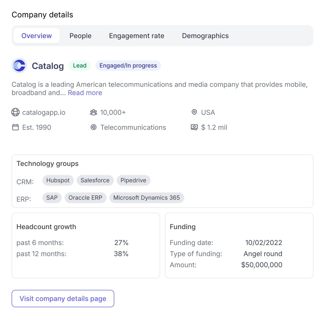 We added a button that will lead users to the full Company Details page ensuring that more data is always reachable but never disruptive to the immediate flow.