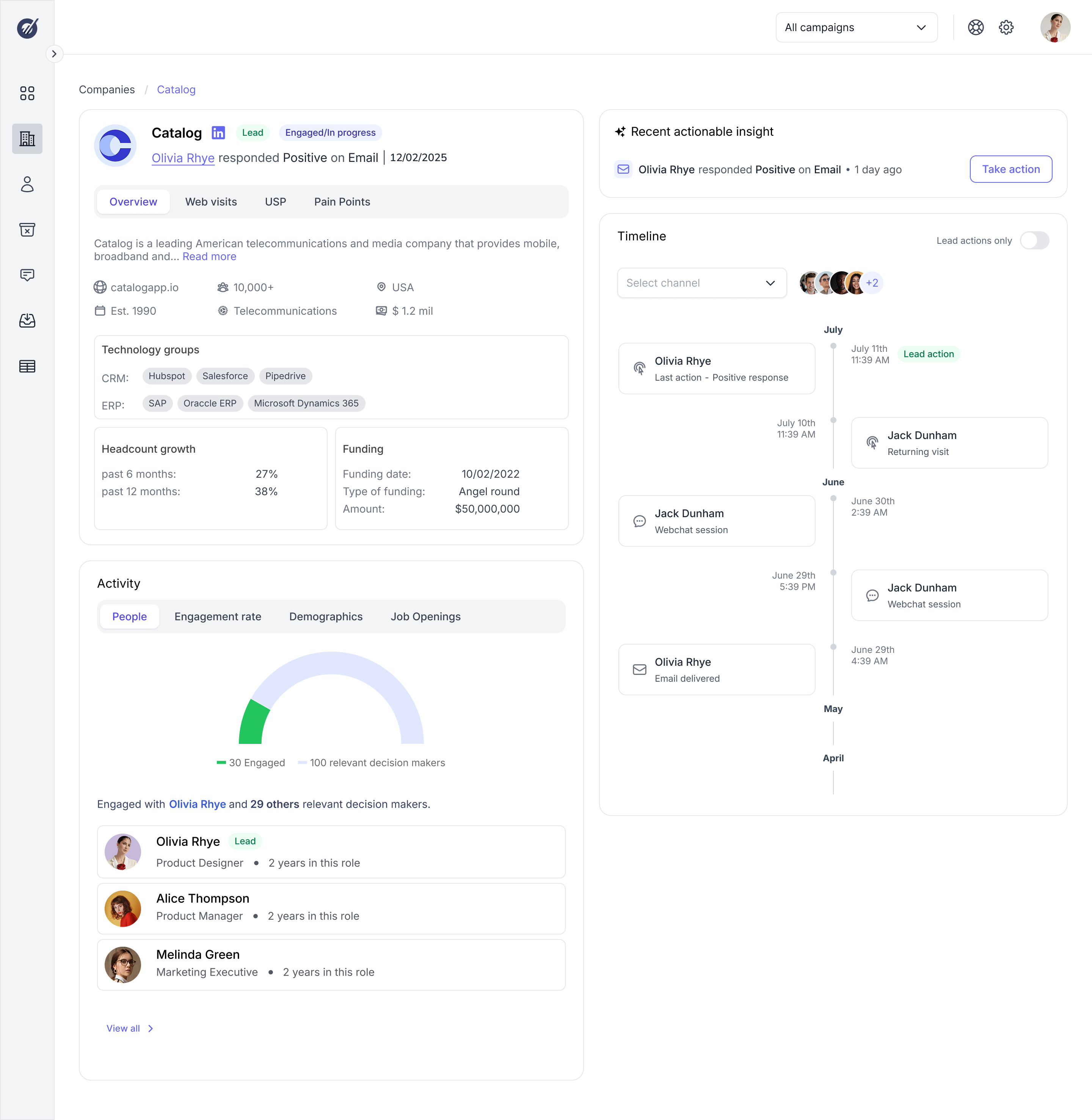 Feeds were surface level, without any behavioral insights. This missing context made it difficult for sales teams to tailor their outreach effectively.