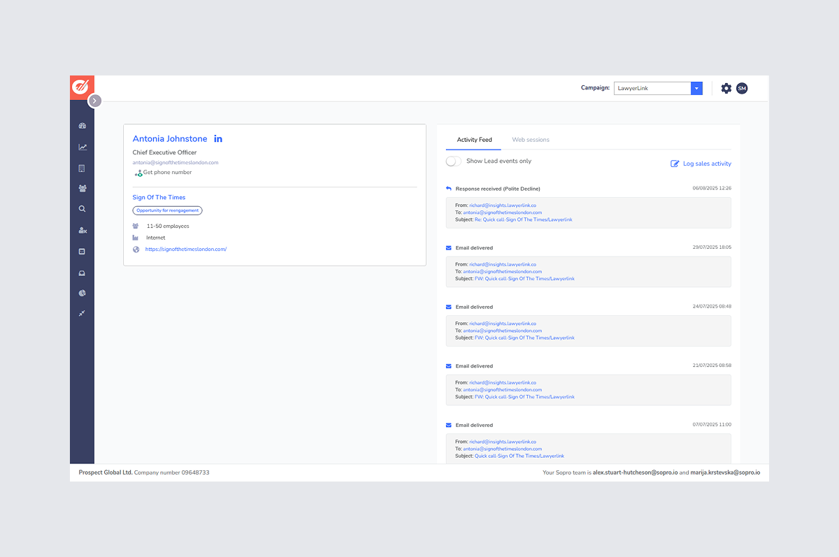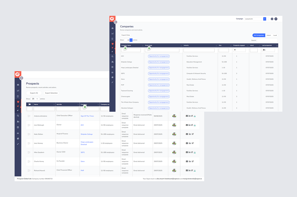 Sopro is a leading B2B lead generation agency that blends proprietary technology with human expertise to deliver high-quality sales opportunities. Their Premium Client Portal serves as the central place for 3,000+ global clients to track campaign performance, monitor prospect intent, and manage lead flows.